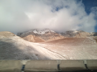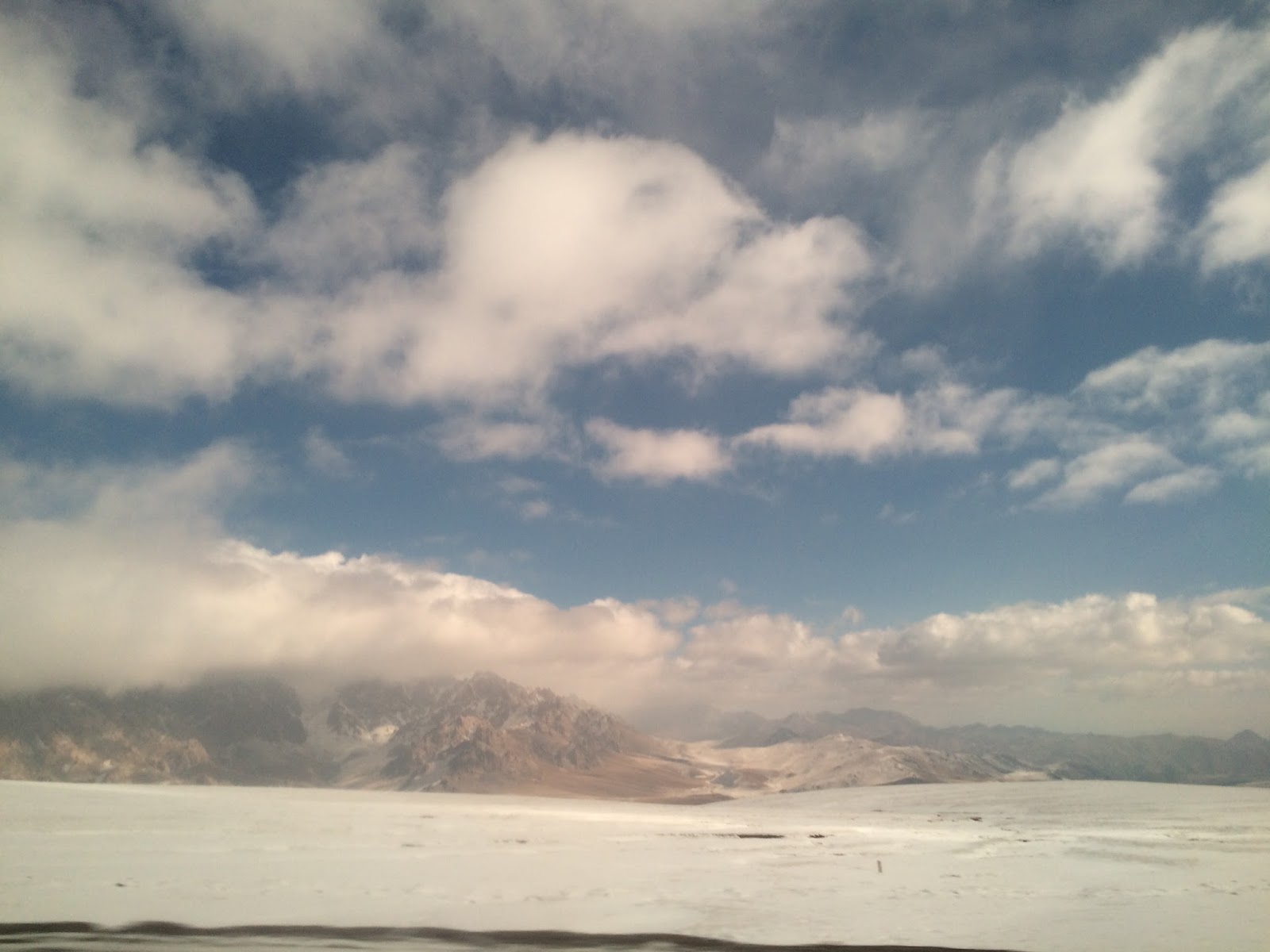 The drive towards the border brought us progressively to higher and higher altitudes. Even though Osh was quite warm, by the time we approached the border we were driving through huge, snow-covered mountains. As usual the scenery was majestic and almost devoid of signs of human presence, as I had become used to in Central Asia. By about 11 am we reached the last Kyrgyz border post. I said goodbye to my driver, and went through the guard post where I would officially receive my stamp and leave Kyrgyzstan. Once I'd walked through the border post though, I realized I had no idea what to do next. All I could see in front of me was a long road stretching into the mountains, with a long line of lorries heading towards China. There was no sign of a Chinese border post. From the other side of the post, my driver gestured for me to get into one of the lorries. I don't know whether he knew the driver or had tipped him, since I could not communicate with anyone, but I did as I was told. The lorry then drove the 20 minute drive through no man's land to the first Chinese border post. When exactly we entered Chinese-controlled land I cannot say, but at some point I realized that I was back in China.
