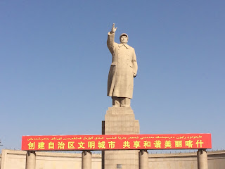| The huge statue of Mao in the middle of Kashgar |